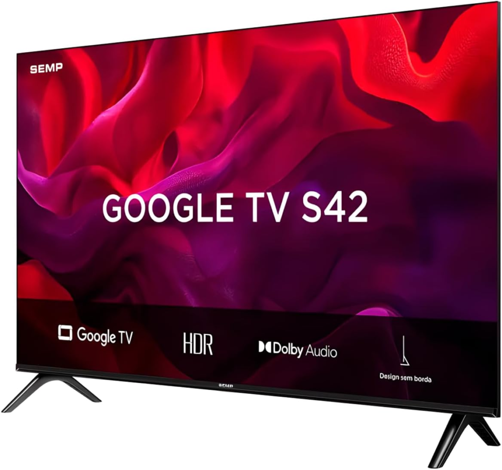 Uma ótima opção para quem quer uma TV compacta (43″) com boa experiência smart, sistema Android TV fluido e design elegante de bordas finas.